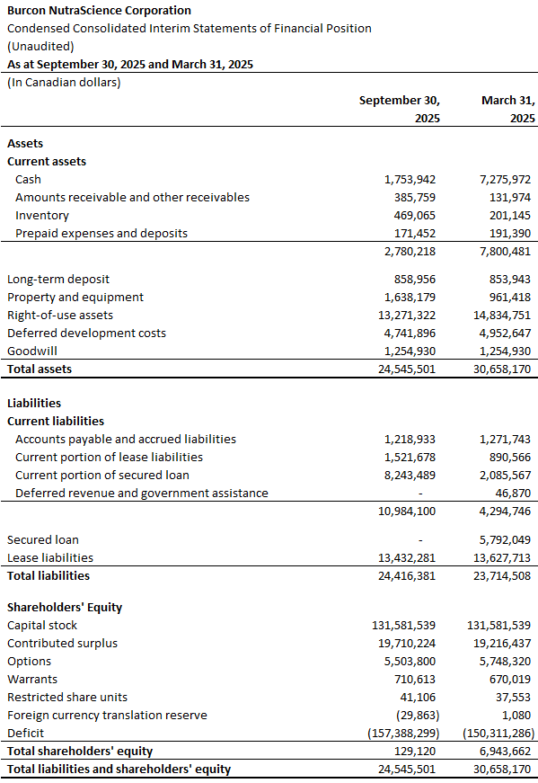 As at September 30, 2025, Burcon had $1.8 million of cash and had a negative working capital of $8.2 million. The working capital deficiency is due to the current nature of the senior secured loan, whereby the lender is a related party and Burcon’s largest shareholder. Subsequent to September 30, 2025, the Company obtained a $0.7 million short-term loan, launched its offering of convertible debentures for proceeds of up to $4.0 million, and extended the maturity of second tranche of the senior secured loan, which collectively  strengthen the Company’s balance sheet and position the Company to capture the growing market demand.
